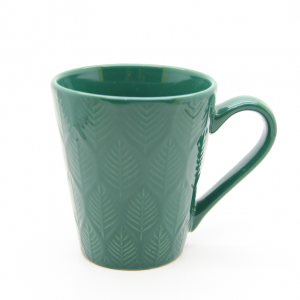 Ceramic color glazed embossed leaf mug 300ml