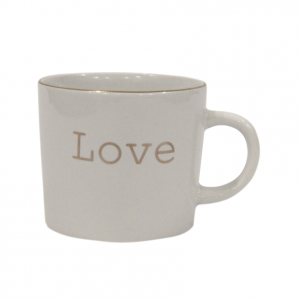 Ceramic white V shape mug with real gold design 320ml