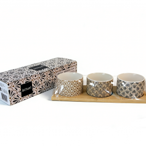 Ceramic bowls/cups sets with bambll tray